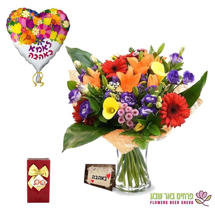 הפרח בגני שוקולד ובלון לאמא באהבה.